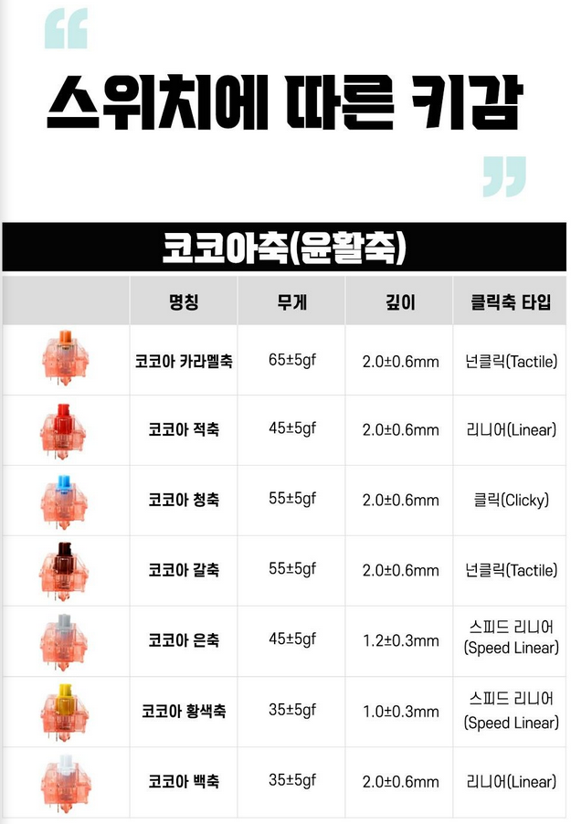 추가로 코코아 황색축 스피드 리니어(Speed Linear)를 사용해보고 싶돠.